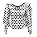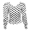 Fantastyczna bluzka, pięknie się układa, rękaw nie ciągnie się przy podnoszeniu ramienia. Absolutnie polecam dodaje urody i odejmuje kg. Pasuje do każdej spódnicy, czerwonej, czarnej, w grochy. POLECAM - możesz ją założyć nie tylko do tańca.
