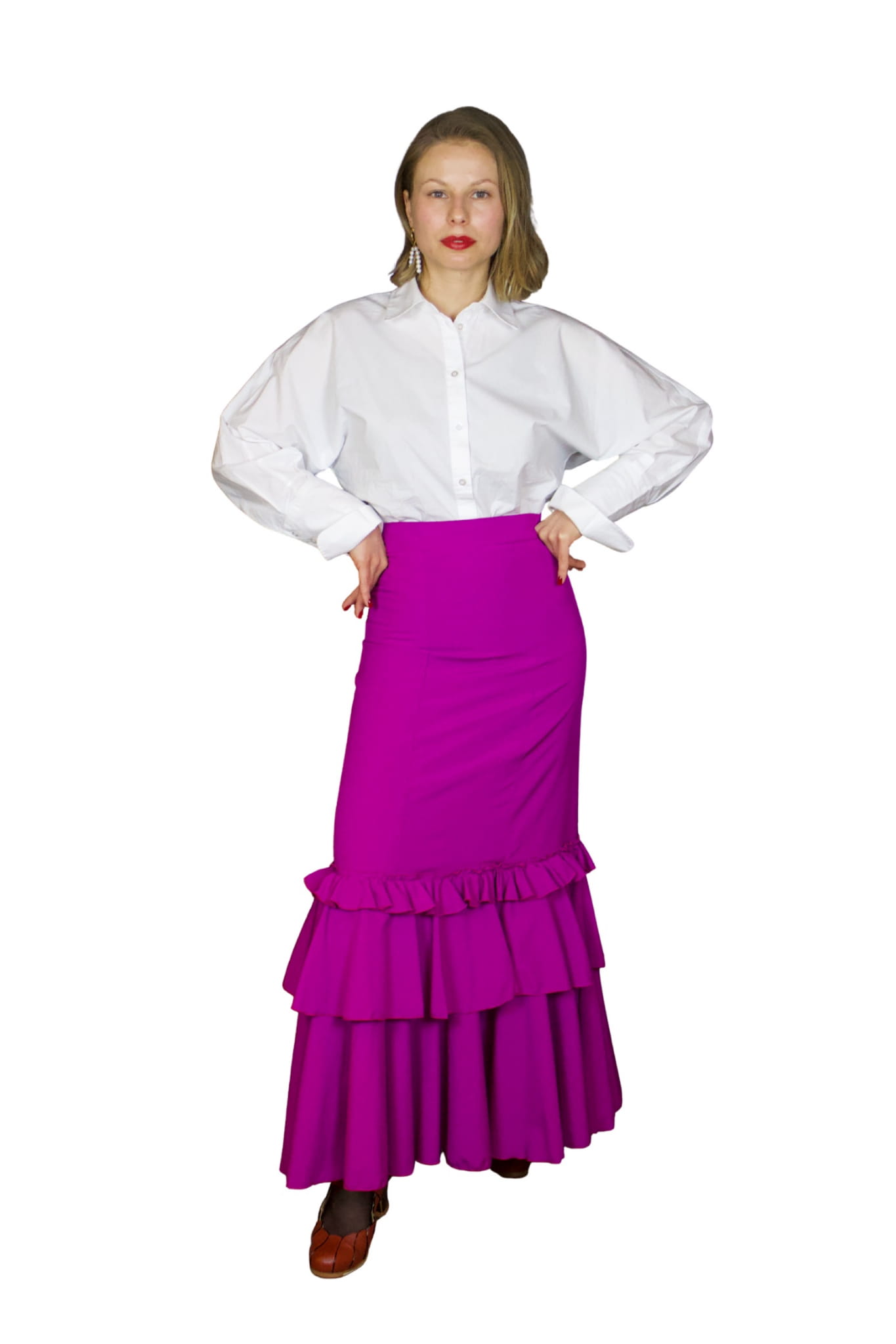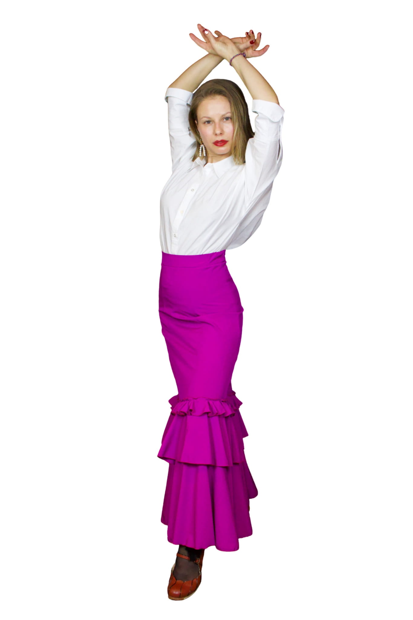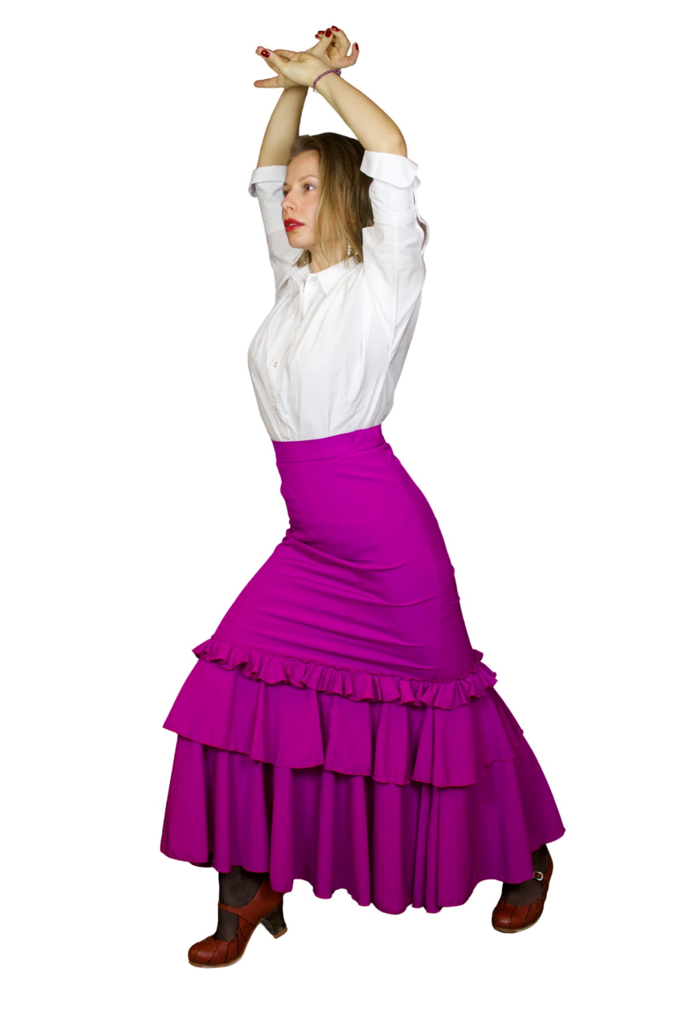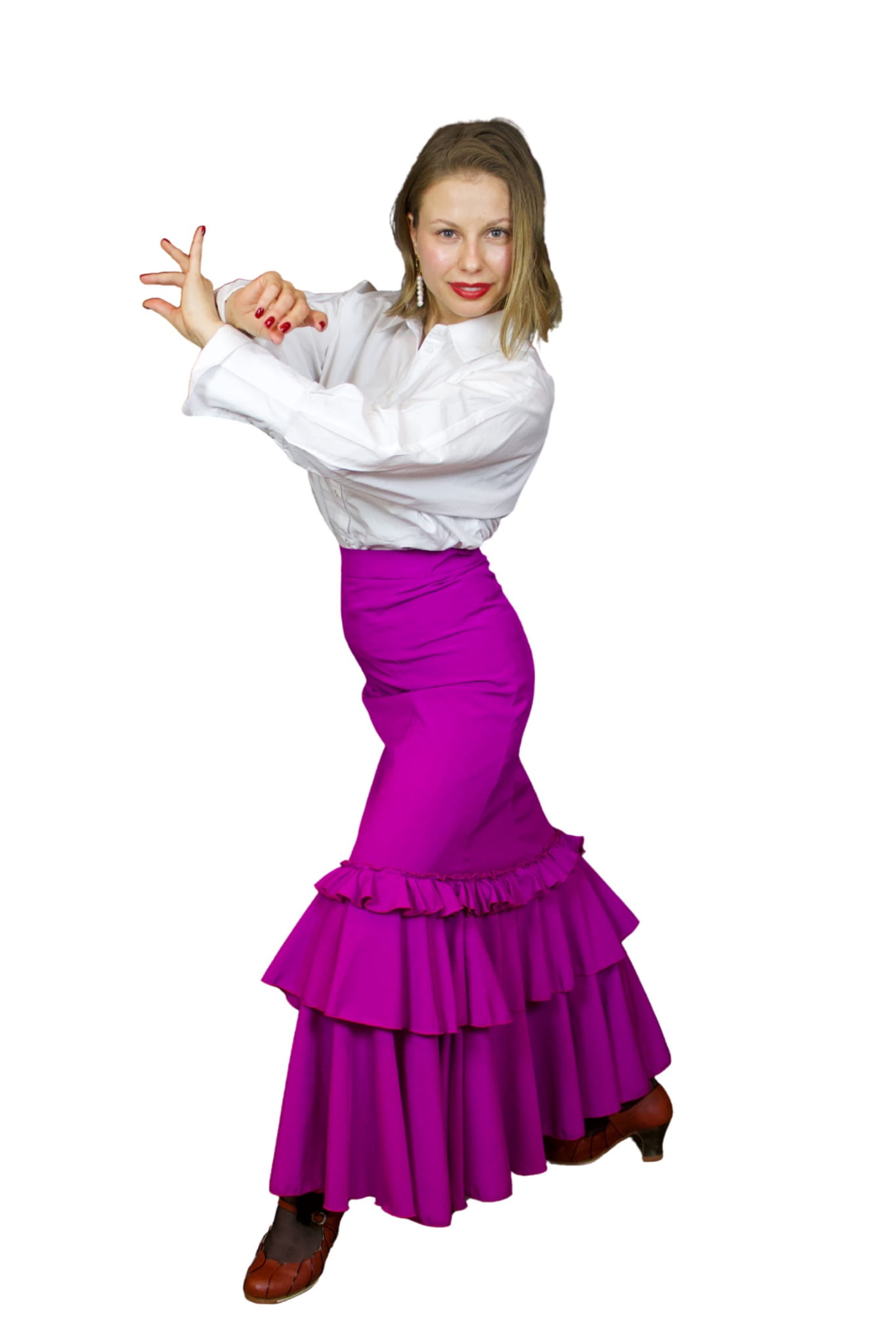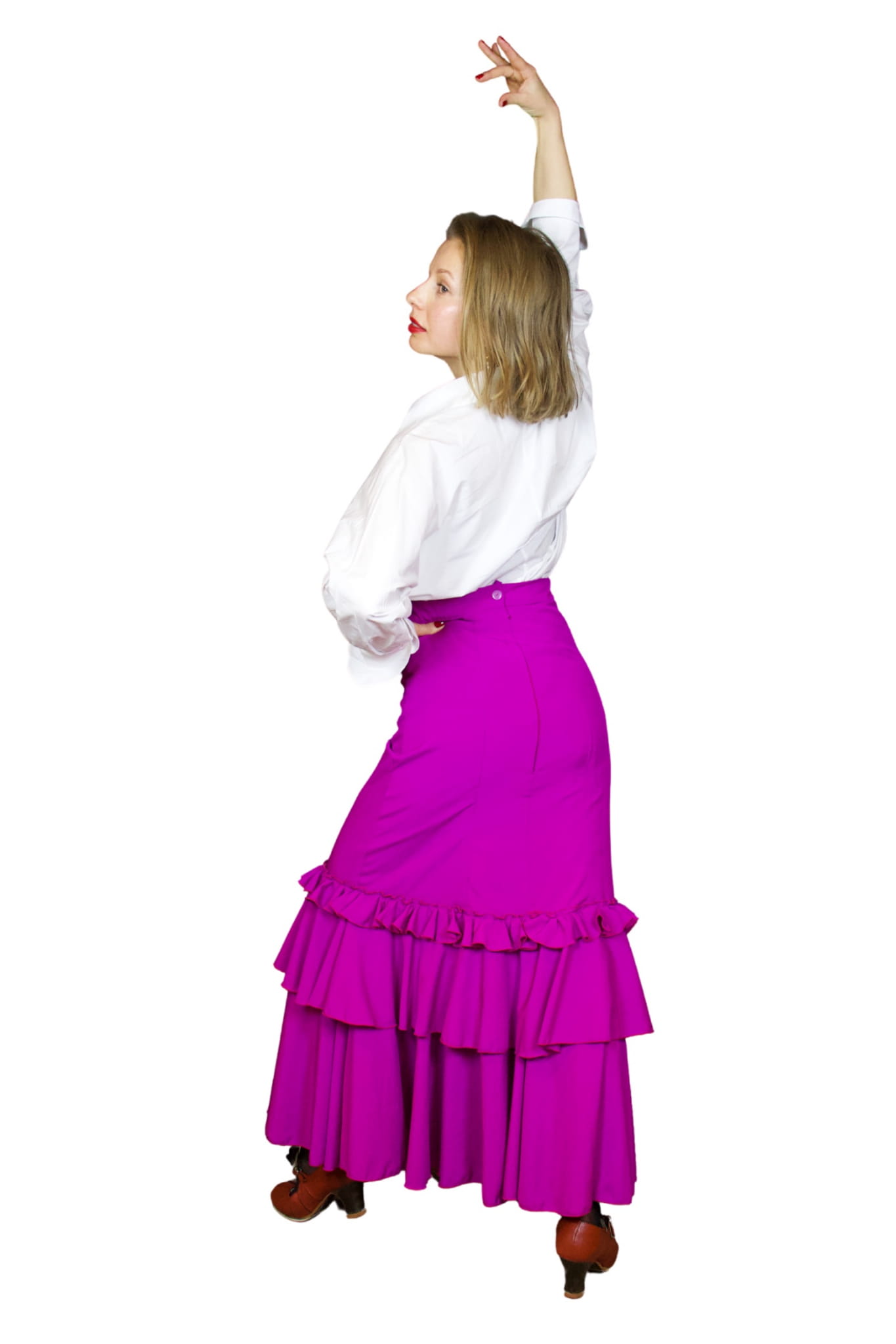 Spódnica Granaina wyróżnia się kombinacją falban różnej wielkości - od górnej mini-falbanki, po bardzo szeroką falbanę dolną. To klasyczna elegancja z oryginalnym "twistem". Idealna dla tancerek poszukujących czegoś wyjątkowego i niepowtarzalnego.