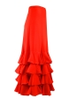 Alegria to model dla miłośniczek falban - ma ich bowiem aż cztery. Będzie się zatem prezentować niebywale efektownie. Doskonale układa się w tańcu, a jej szerokość spódnicy umożliwia pełen zakres ruchu i pracy ze spódnicą w tańcu. Gumka w tali zapewnia idealne dopasowanie i wygodę.